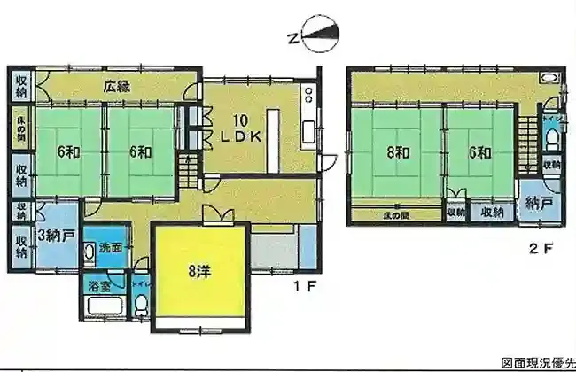| 設備 | トイレ2ヶ所、都市ガス、上水道、下水道、庭、駐車場2台分、納戸、広縁 | ||