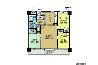 | 設備 | 室内洗濯機置場、エレベーター、洗髪洗面化粧台、照明器具、都市ガス、宅配BOX、バイク置き場、駐輪場、サービスルーム(約5.5帖) | ||