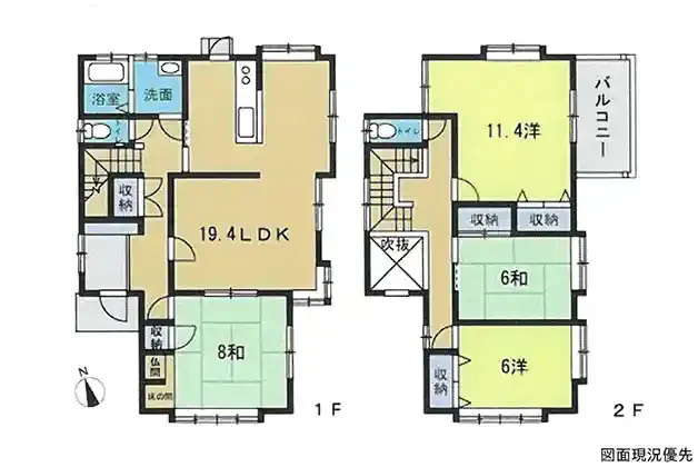 | 特徴 | 日当り良好、吹抜、令和5年11月エコキュート交換・床下空調ファン交換、令和4年12月リフォーム済:内装工事(壁紙・襖・フローリング・クロス・畳張替他)、水回り工事(洗面化粧台・システムバス・トイレ取替他) | ||