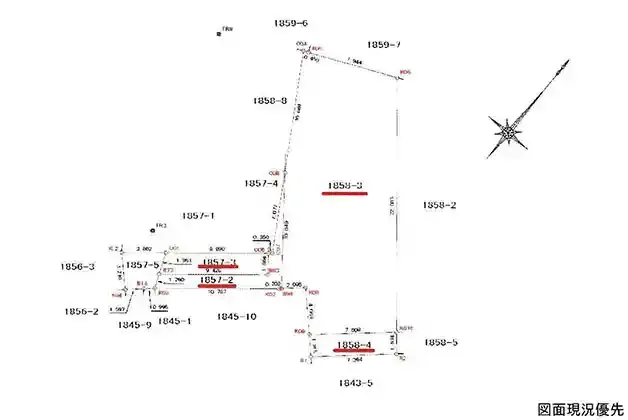 | 設備 | 地番:1857-2(宅地18.25㎡)、-3(宅地17.04㎡)、1858-3(宅地212.10㎡)、-4(雑種地13㎡) | ||