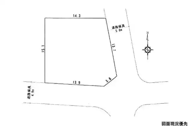 | 接道状況 | 南4.9m 公道 接面13.9m 東5m 公道 接面13.7m 角地 | ||