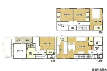 | 設備 | 温水洗浄便座、追焚機能、浴室乾燥機、システムキッチン、カウンターキッチン、浄水器、食器洗浄乾燥機、洗髪洗面化粧台、都市ガス、上水道、下水道、モニタ付インターホン、駐車場2台分、パントリー、土間、納戸、ランドリースぺース、トイレ3ヶ所 | ||