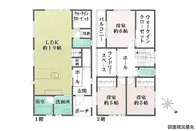 | 設備 | トイレ2ヶ所、システムキッチン、カウンターキッチン、IHクッキングヒーター、ウォークインクローゼット、洗髪洗面化粧台、上水道、下水道、モニタ付インターホン、駐車場3台分、リビング階段、ランドリースペース | ||