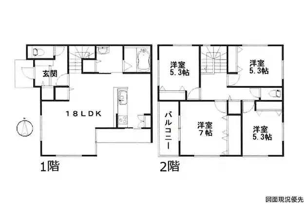 | 設備 | 温水洗浄便座、トイレ2ヶ所、追焚機能、浴室乾燥機、システムキッチン、カウンターキッチン、IHクッキングヒーター、浄水器、食器洗浄乾燥機、床下収納、洗髪洗面化粧台、上水道、下水道、複層ガラス、モニタ付インターホン、駐車場2台分、リビング階段 | ||