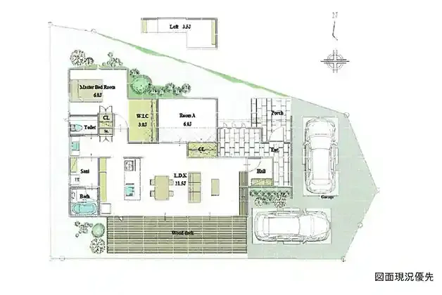 | 設備 | 追焚機能、システムキッチン、カウンターキッチン、IHクッキングヒーター、浄水器、食器洗浄乾燥機、ウォークインクローゼット、洗髪洗面化粧台、照明器具、都市ガス、上水道、下水道、複層ガラス、エアコン、CATV、インターネット、モニタ付インターホン、駐車場2台分、3口以上コンロ、全居室収納、ロフト、EV車充電設備、ウッドデッキ、火災警報器 | ||