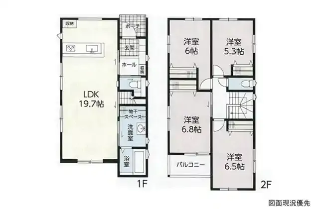 設備 | 温水洗浄便座、トイレ2ヶ所、システムキッチン、カウンターキッチン、洗髪洗面化粧台、モニタ付インターホン、駐車場2台分、リビング階段 | ||