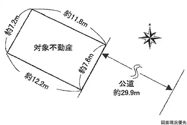 | 接道状況 | 南東29.9m 公道 接面7.6m 一方道路 | ||
