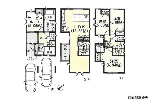 | 設備 | 温水洗浄便座、トイレ2ヶ所、追焚機能、浴室乾燥機、システムキッチン、カウンターキッチン、IHクッキングヒーター、浄水器、食器洗浄乾燥機、ウォークインクローゼット、洗髪洗面化粧台、上水道、下水道、複層ガラス、モニタ付インターホン、庭、駐車場2台分、サービスルーム、宅配Box、カップボード、電子キー | ||