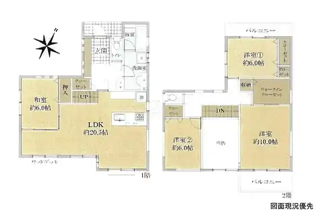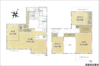 | 設備 | トイレ2ヶ所、システムキッチン、カウンターキッチン、ウォークインクローゼット、照明器具、都市ガス、上水道、下水道、モニタ付インターホン、駐車場2台分、リビング階段、バルコニー2ヶ所 | ||