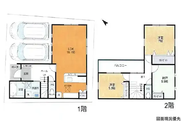 | 設備 | 温水洗浄便座、トイレ2ヶ所、追焚機能、浴室乾燥機、システムキッチン、カウンターキッチン、食器洗浄乾燥機、床下収納、上水道、下水道、複層ガラス、モニタ付インターホン、駐車場2台分、納戸(5.5帖) | ||