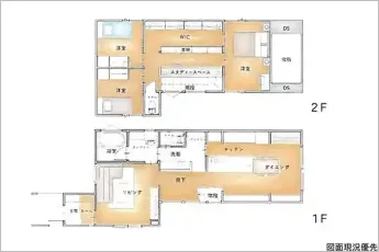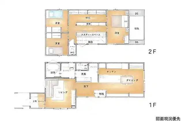 | 設備 | トイレ2ヶ所、システムキッチン、カウンターキッチン、IHクッキングヒーター、ウォークインクローゼット、洗髪洗面化粧台、照明器具、上水道、下水道、モニタ付インターホン、庭、駐車場2台分、スタディスペース、パントリー、リビング階段、キッチン:グラフテクト、床材:オーク無垢、階段:鉄骨階段、カーテン・家具付 | ||