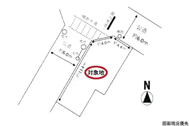 | 接道状況 | 西6m 公道 接面13.4m 北6m 公道 接面4.4m 角地 | ||