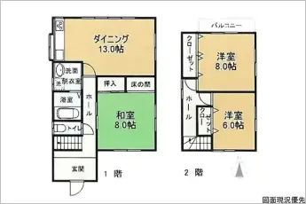 敷地約36坪 木造2階建て 平成6年築 4DK☆