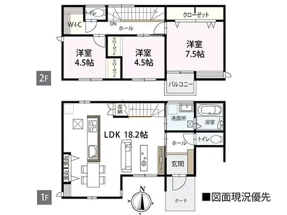 | 設備 | 温水洗浄便座、トイレ2ヶ所、追焚機能、システムキッチン、カウンターキッチン、IHクッキングヒーター、浄水器、食器洗浄乾燥機、ウォークインクローゼット、床下収納、洗髪洗面化粧台、電気、上水道、下水道、モニタ付インターホン、駐車場2台分 | ||