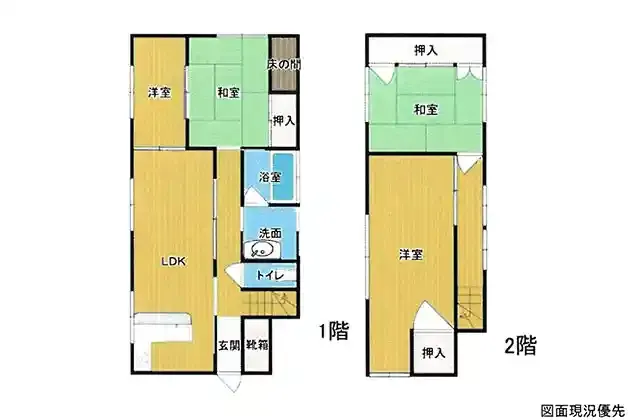 | 特徴 | 日当り良好、2025年1月末リフォーム完成済:耐震補強工事、駐車場増設1台→2台分、窓(トイレ・脱衣所・浴室以外)断熱窓へ交換、キッチンL型→窓に沿ってI型へ、ユニットバス・洗面台・クロス全交換、LDK・2F洋室フロアタイル上貼り、クッションフロア交換、畳表替え、襖張替え、コンセント・スイッチカバー交換、分電盤・給湯器交換 | ||
