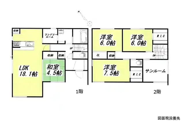| 設備 | トイレ2ヶ所、システムキッチン、カウンターキッチン、IHクッキングヒーター、食器洗浄乾燥機、ウォークインクローゼット、床下収納、洗髪洗面化粧台、モニタ付インターホン、駐車場2台分、ランドリールーム、サンルーム、パントリー、勝手口、SIC | ||