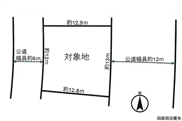 | 接道状況 | 西6m 公道 接面12m 東12m 公道 接面13m 二方道路(除角地) | ||