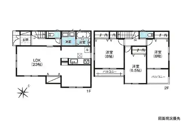 | 設備 | 温水洗浄便座、トイレ2ヶ所、追焚機能、浴室乾燥機、システムキッチン、カウンターキッチン、浄水器、床下収納、洗髪洗面化粧台、電気、都市ガス、上水道、下水道、複層ガラス、モニタ付インターホン、駐車場2台分、バルコニー2ヶ所、タグキー搭載、宅配Box | ||