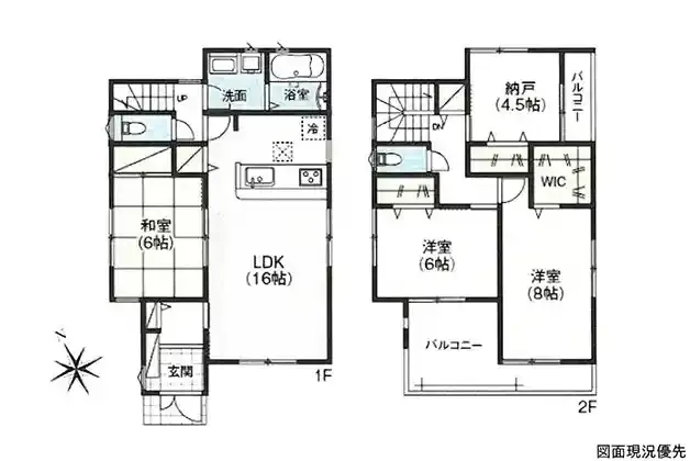| 設備 | 温水洗浄便座、トイレ2ヶ所、追焚機能、浴室乾燥機、システムキッチン、カウンターキッチン、浄水器、ウォークインクローゼット、床下収納、洗髪洗面化粧台、都市ガス、上水道、下水道、複層ガラス、モニタ付インターホン、駐車場2台分、タグキー搭載、宅配Box、納戸、バルコニー2ヶ所 | ||