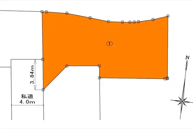 | 設備 | 都市ガス、上水道、下水道、(給排水・都市ガス引込み工事完了)、敷地延長部分の舗装工事完了、分筆・地目変更完了、敷地延長部分は共有持分となります | ||