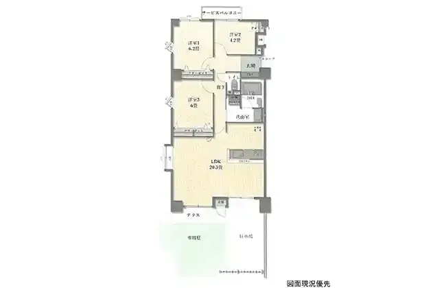 1階部分。専有面積80.79㎡の3LDK☆