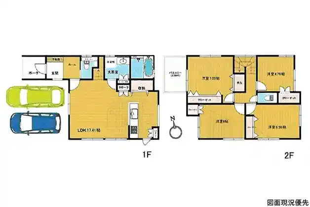 | 設備 | 温水洗浄便座、トイレ2ヶ所、浴室乾燥機、システムキッチン、カウンターキッチン、IHクッキングヒーター、食器洗浄乾燥機、洗髪洗面化粧台、上水道、下水道、モニタ付インターホン、駐車場2台分、リビング階段、パントリー、全居室収納 | ||
