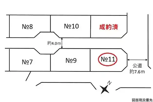 | 接道状況 | 北東7.6m 公道 北西4m 私道 位置指定有 角地 | ||