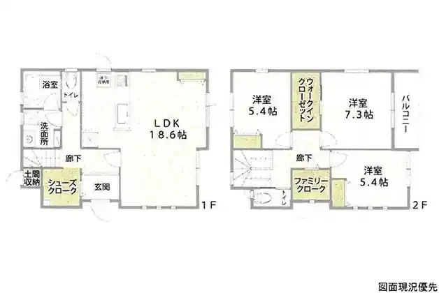 | 設備 | トイレ2ヶ所、システムキッチン、カウンターキッチン、IHクッキングヒーター、ウォークインクローゼット、床下収納、洗髪洗面化粧台、上水道、下水道、モニタ付インターホン、駐車場3台分、SIC、土間収納、ファミリークローク | ||