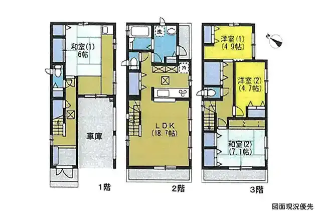 | 設備 | システムキッチン、カウンターキッチン、IHクッキングヒーター、床下収納、上水道、下水道、エアコン、モニタ付インターホン、トイレ3ヶ所、タイル外壁、ステンレス屋根 | ||
