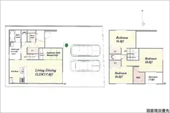 | 設備 | 温水洗浄便座、トイレ2ヶ所、追焚機能、システムキッチン、カウンターキッチン、IHクッキングヒーター、浄水器、食器洗浄乾燥機、ウォークインクローゼット、床下収納、洗髪洗面化粧台、電気、上水道、下水道、エアコン、モニタ付インターホン、駐車場4台分、SIC、サンルーム、ランドリールーム、パントリー | ||