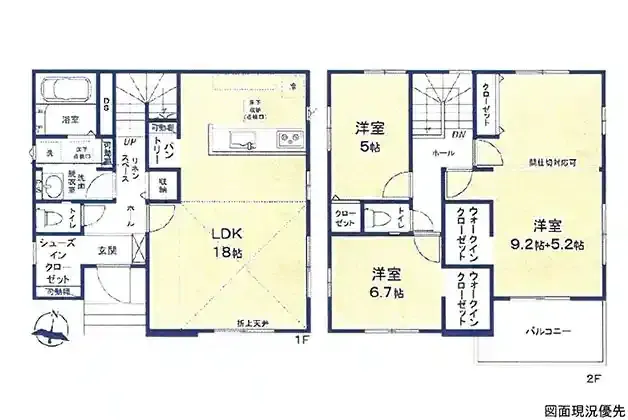 | 設備 | 温水洗浄便座、トイレ2ヶ所、システムキッチン、カウンターキッチン、食器洗浄乾燥機、ウォークインクローゼット、床下収納、洗髪洗面化粧台、プロパンガス、上水道、下水道、モニタ付インターホン、駐車場2台分、SIC、パントリー、折上天井、リネンスペース | ||