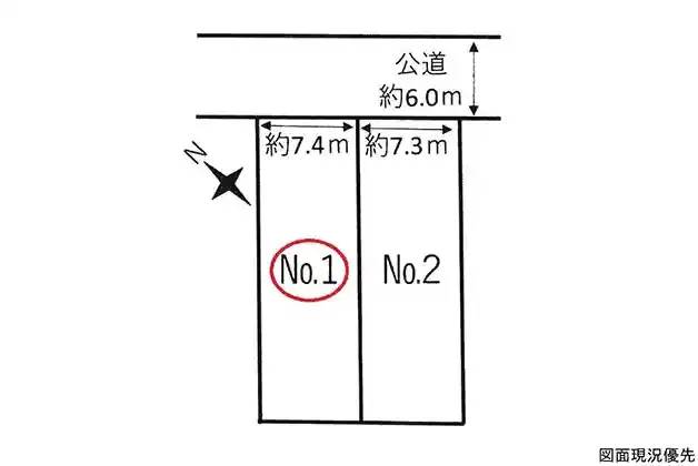 前面道路は北東約6m!間口は約7.4m!