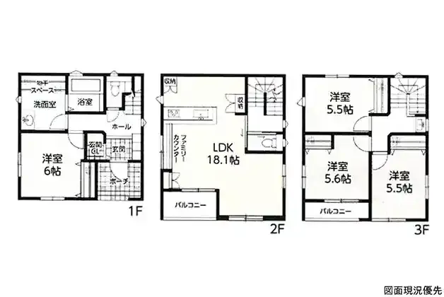 | 設備 | トイレ2ヶ所、システムキッチン、カウンターキッチン、洗髪洗面化粧台、都市ガス、下水道、モニタ付インターホン、駐車場3台分、収納充実、物干しスペース、SIC | ||