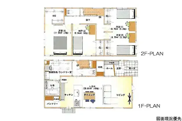 | 設備 | 温水洗浄便座、トイレ2ヶ所、システムキッチン、カウンターキッチン、IHクッキングヒーター、食器洗浄乾燥機、ウォークインクローゼット、洗髪洗面化粧台、上水道、下水道、モニタ付インターホン、駐車場2台分、納戸(6帖)、パントリー、勝手口、スマートキー、EVコンセント、宅配Box | ||