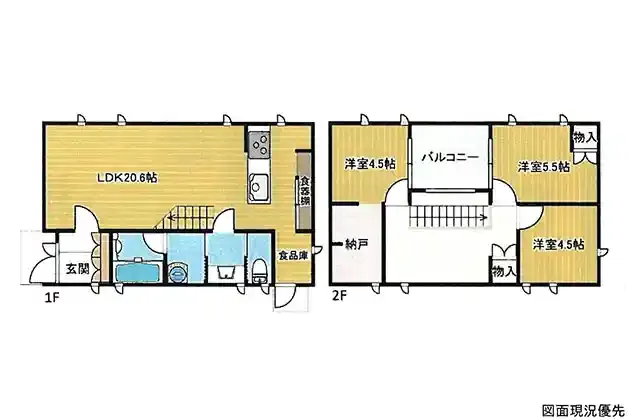 | 設備 | 浴室乾燥機、システムキッチン、カウンターキッチン、IHクッキングヒーター、食器洗浄乾燥機、洗髪洗面化粧台、照明器具、上水道、下水道、モニタ付インターホン、駐車場2台分、食器棚、食品庫、納戸、リビング階段 | ||