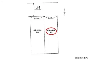 | 接道状況 | 北5m 公道 接面5.7m 一方道路 | ||