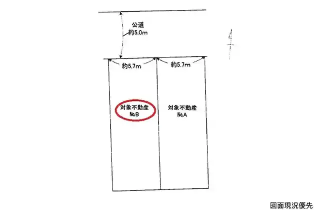 | 接道状況 | 北5m 公道 接面5.7m 一方道路 | ||