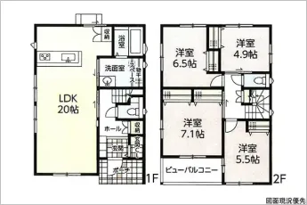 | 設備 | トイレ2ヶ所、システムキッチン、カウンターキッチン、洗髪洗面化粧台、都市ガス、下水道、モニタ付インターホン、駐車場3台分、物干しスペース | ||