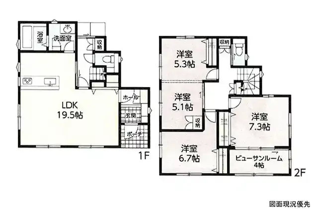 | 設備 | トイレ2ヶ所、システムキッチン、カウンターキッチン、洗髪洗面化粧台、都市ガス、下水道、モニタ付インターホン、駐車場4台分、ビューサンルーム | ||