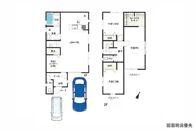 設備 | 温水洗浄便座、トイレ2ヶ所、システムキッチン、カウンターキッチン、ウォークインクローゼット、床下収納、洗髪洗面化粧台、都市ガス、上水道、下水道、モニタ付インターホン、駐車場2台分、タタミコーナー、リビング階段 | ||