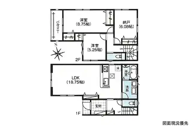 | 設備 | 温水洗浄便座、トイレ2ヶ所、浴室乾燥機、システムキッチン、カウンターキッチン、浄水器、床下収納、洗髪洗面化粧台、都市ガス、上水道、下水道、複層ガラス、モニタ付インターホン、納戸(6.08帖)、パントリー、タグキー搭載 | ||