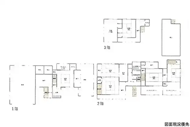 | 特徴 | 二世帯向き、構造:木・鉄骨鉄筋コンクリート造瓦葺陸屋根3階建 契約不適合責任免責 昭和44年・昭和52年・平成5年増築 | ||