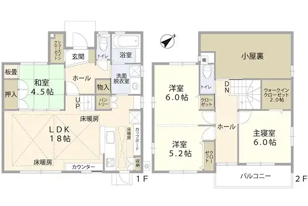 | 設備 | トイレ2ヶ所、システムキッチン、カウンターキッチン、ウォークインクローゼット、グルニエ、都市ガス、上水道、下水道、床暖房、モニタ付インターホン、駐車場2台分、SIC、パントリー、リビング階段 | ||