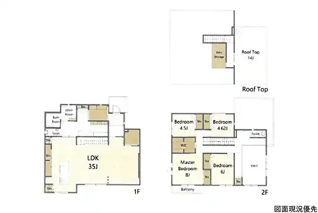 | 設備 | トイレ2ヶ所、システムキッチン、IHクッキングヒーター、ウォークインクローゼット、グルニエ、上水道、下水道、モニタ付インターホン、ルーフバルコニー、駐車場3台分、LDK35帖、アイランドキッチン、SIC、リビング階段 | ||