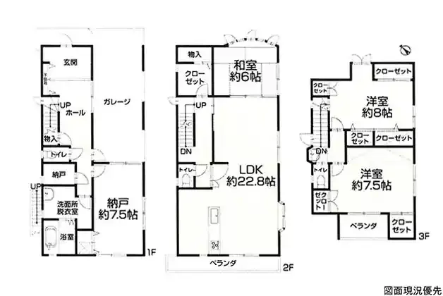| 設備 | 温水洗浄便座、追焚機能、浴室乾燥機、システムキッチン、カウンターキッチン、IHクッキングヒーター、食器洗浄乾燥機、ウォークインクローゼット、洗髪洗面化粧台、上水道、浄化槽、モニタ付インターホン、トイレ3ヶ所、納戸(7.5帖) | ||