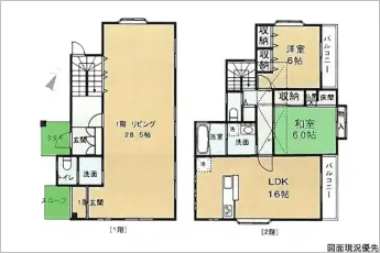 | 設備 | トイレ2ヶ所、システムキッチン、カウンターキッチン、都市ガス、上水道、下水道、バルコニー2ヶ所 | ||