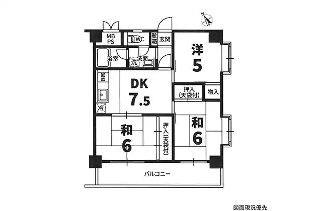 7階建て6階部分。現況渡し、専有面積54.72㎡の3DK☆
