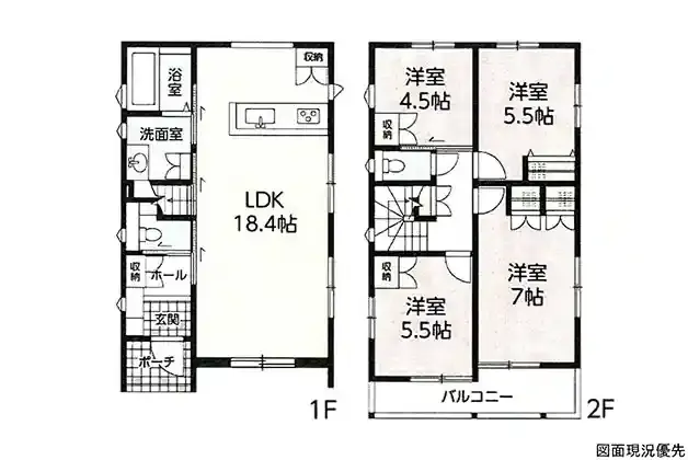 | 設備 | トイレ2ヶ所、システムキッチン、カウンターキッチン、洗髪洗面化粧台、モニタ付インターホン、駐車場2台分、リビング階段 | ||