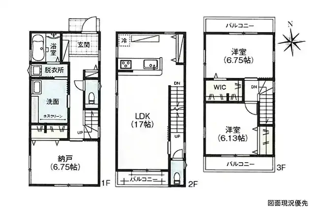 | 設備 | 温水洗浄便座、トイレ2ヶ所、浴室乾燥機、システムキッチン、カウンターキッチン、浄水器、ウォークインクローゼット、洗髪洗面化粧台、上水道、下水道、複層ガラス、モニタ付インターホン、駐車場2台分、納戸(6.75帖)、カップボード、ホスクリーン、可動棚、宅配Box搭載機能門柱、タグキー、バルコニー3ヶ所 | ||