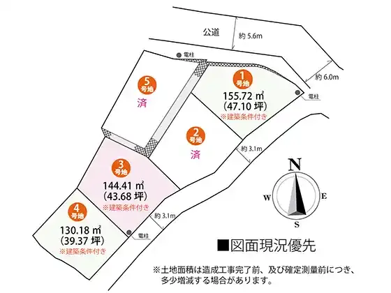 | 諸条件・相談 | 宅地造成許可:指令廿都第97010号(令和7年8月5日)、 地目は宅地に変更予定 | ||